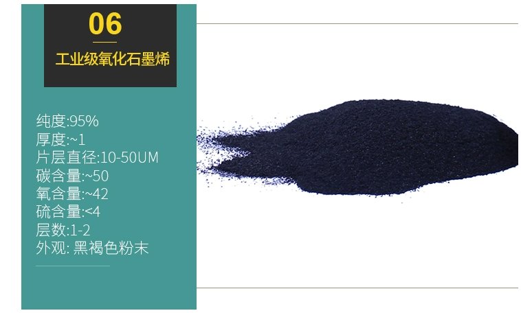 | 工业级氧化石墨烯 | 黑褐色粉末 | 95% | ~1 | <50 | >42 | <4 | 10-50um | 1-2 |